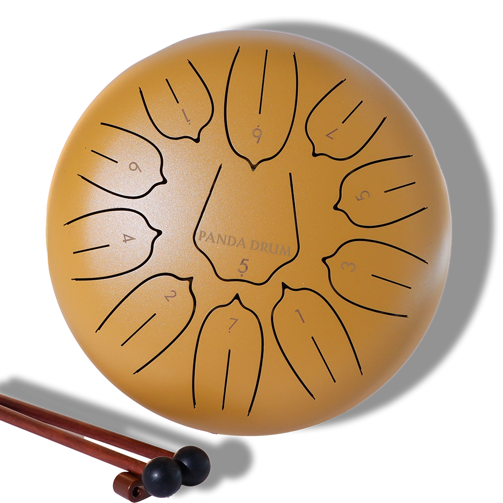 The 8-tone Panda Drum℗ is tuned to a melodic D-minor (440 Hz) and the 11-tone Panda Drum℗ resonates in the classic C-major (432 Hz).